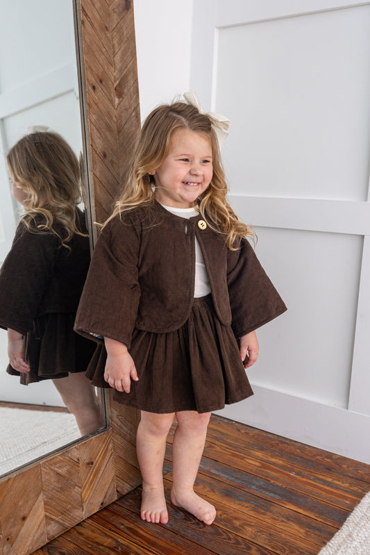 Reversible Brown Corduroy & Grey Floral Print Quilted Long Sleeve Jacket