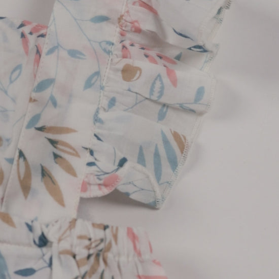Infant White Printed Bubble with Ruffle Cap Sleeves