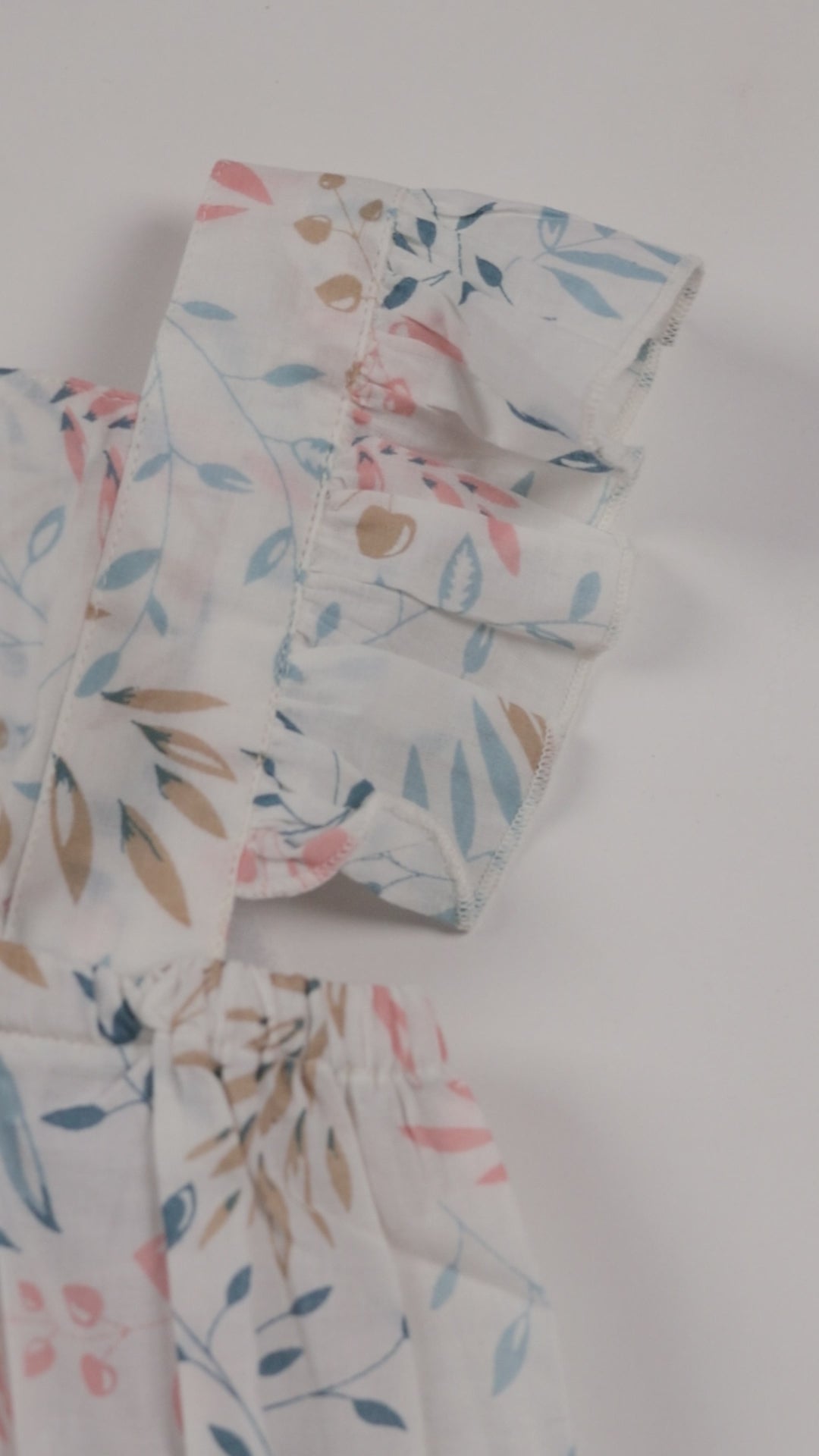 Adorn your little one in this adorable Infant White Printed Bubble, designed for both style and comfort. This charming outfit features a belt on the back for a perfect fit and cap sleeves with a delightful ruffle design. The snap buttons between the leg openings make it easy to wear, ensuring convenience for parents and comfort for the baby.