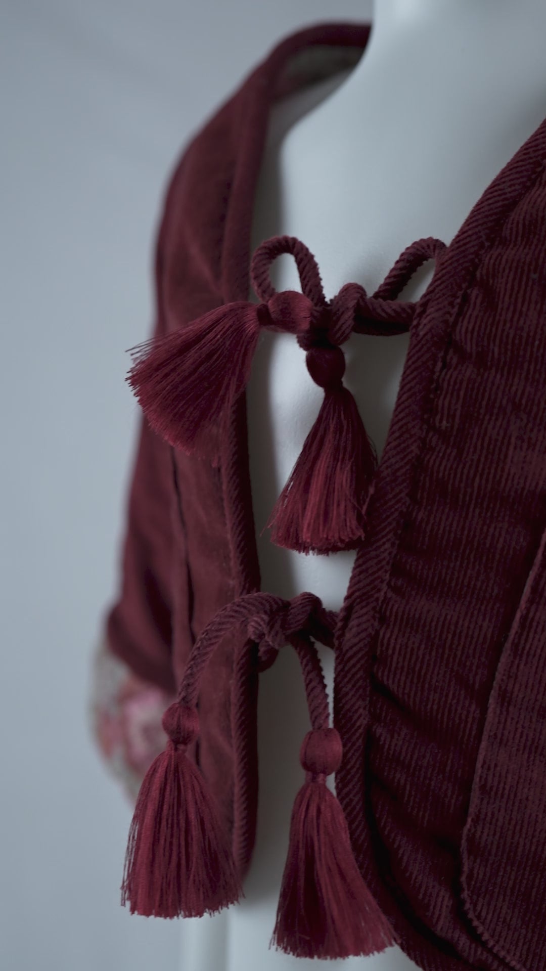 - Detail: Tassel Ties. Loose fit to accommodate layers in colder weather.
