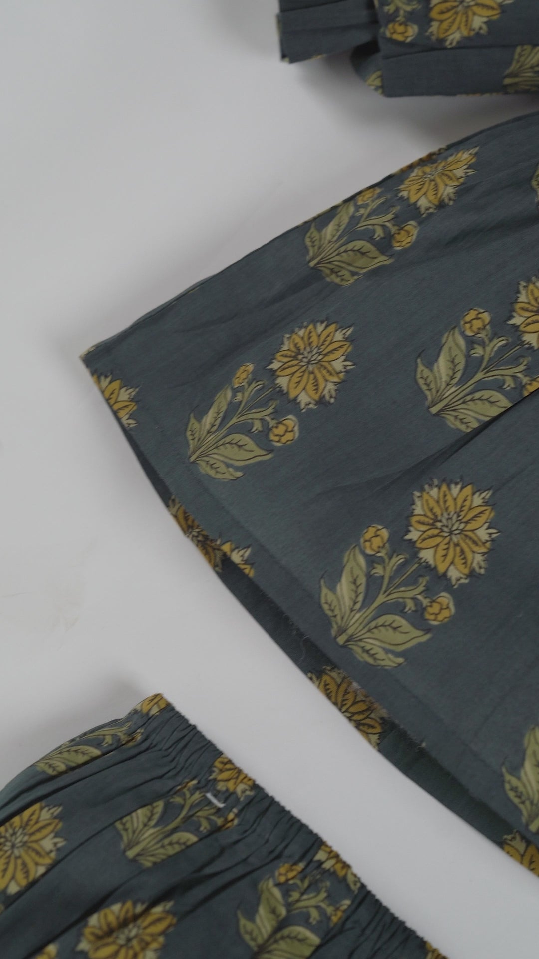 - Details: Quarter bubble sleeves, soft elasticated cuffs for comfortable fit. Button closure on the back.