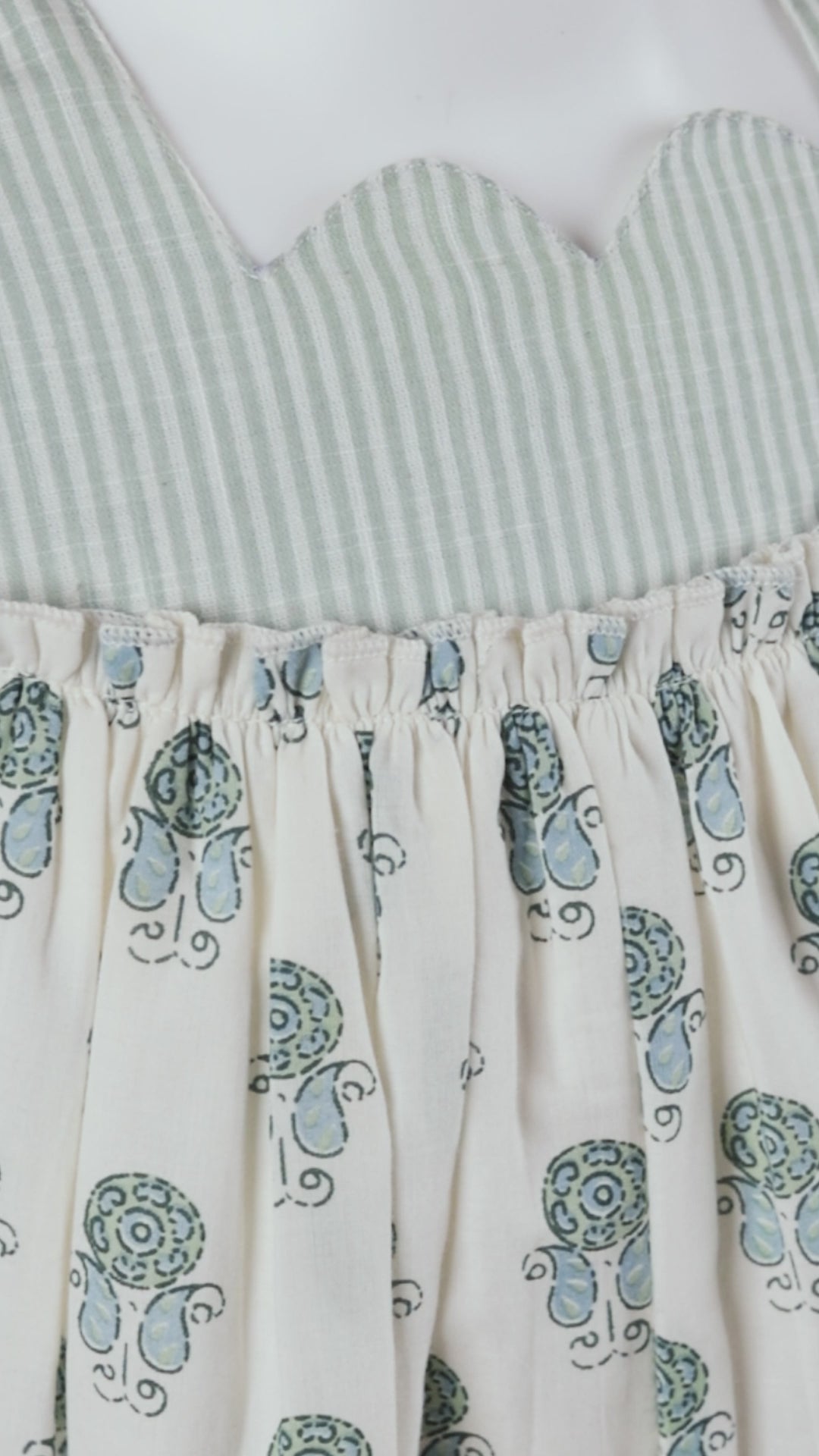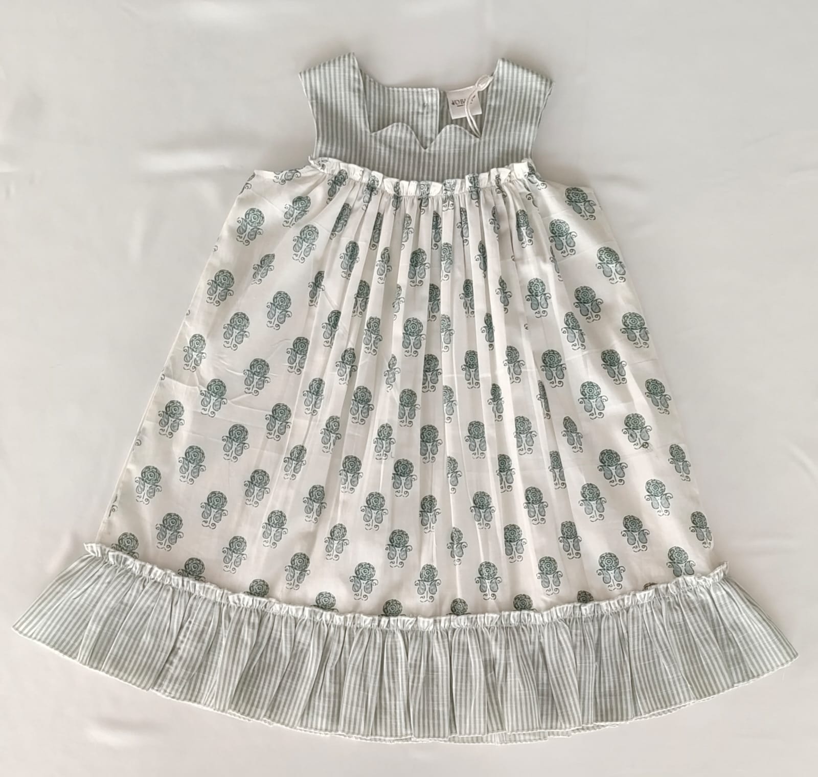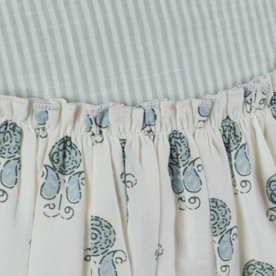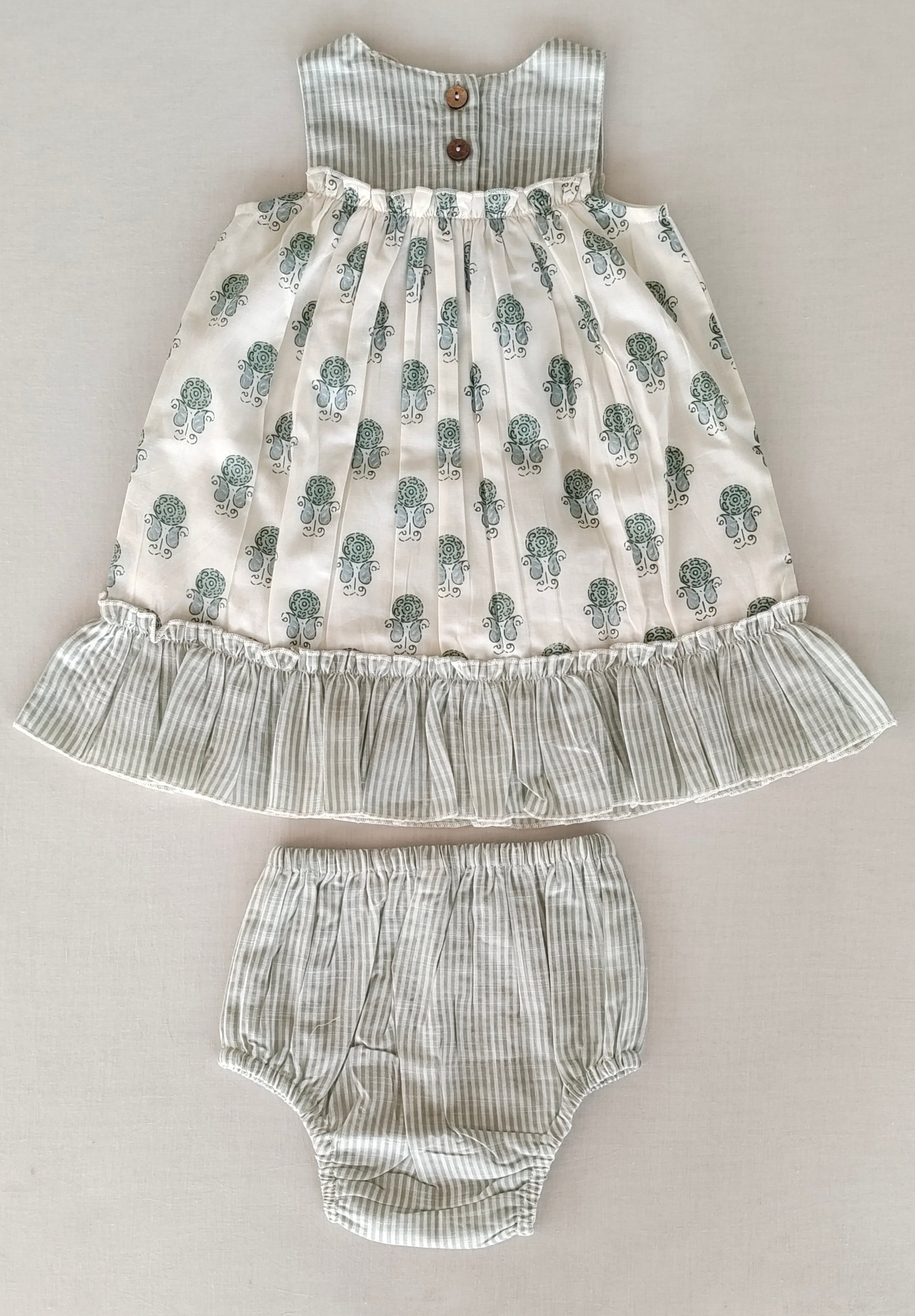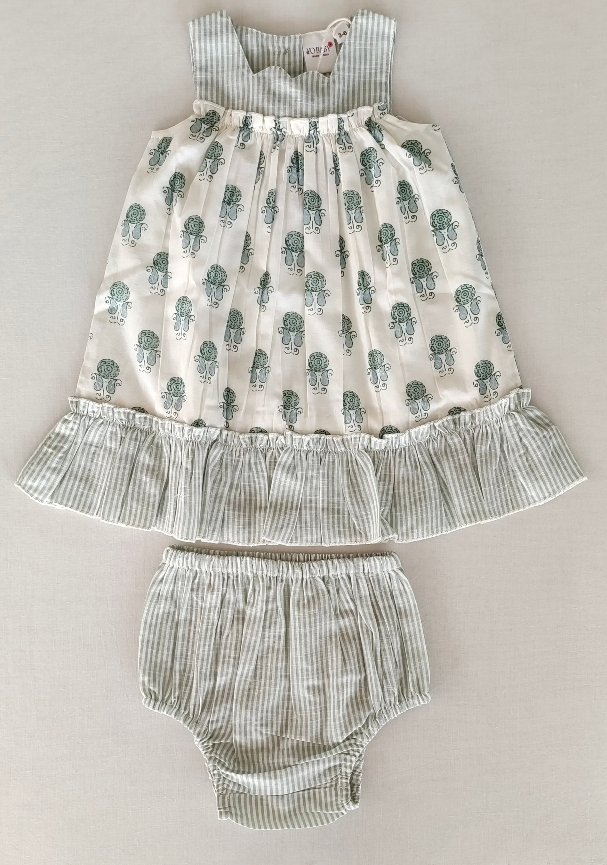 Sage Booty Print Cotton Sweetheart Neck Dress for Kids & Infants – Stripe Detail, Comfortable Fit