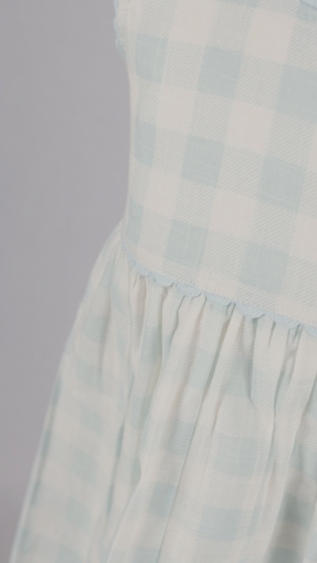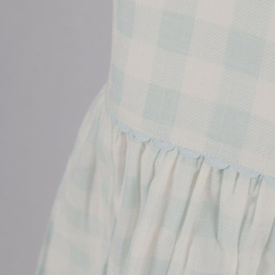 Stylish Cap Sleeve Dress in Blue Checks with Gaiders and Shell Button Details.